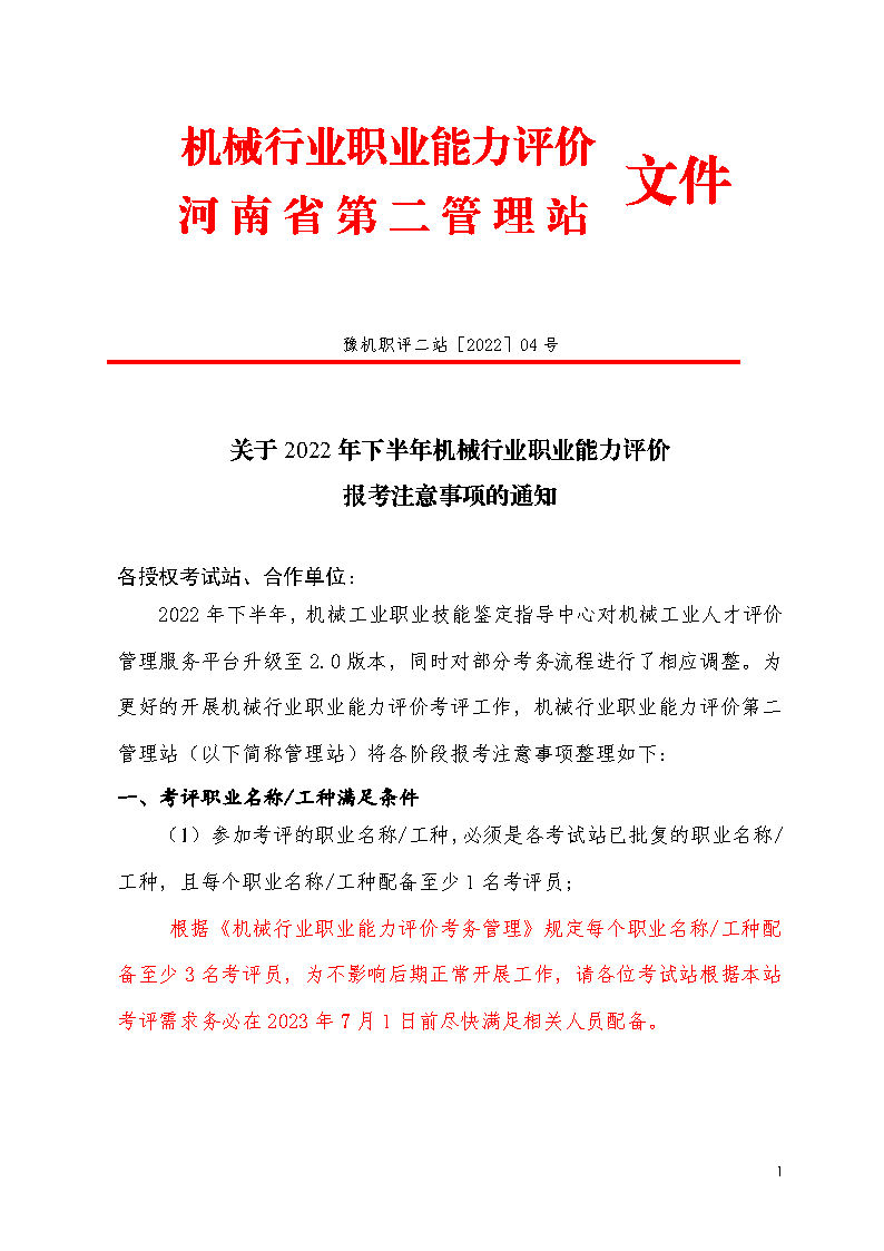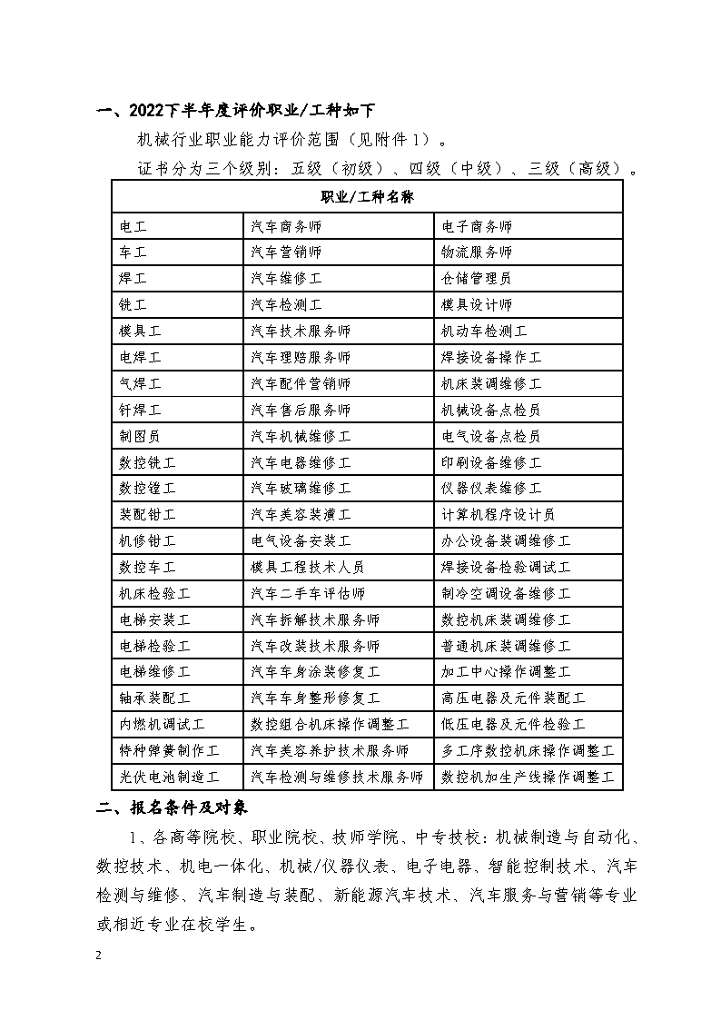 关于举办2022年下半年机械行业职业能力评价有关工作安排的通知