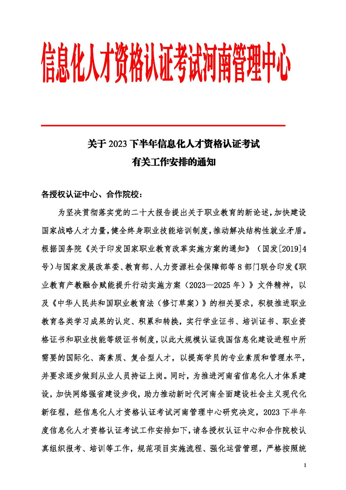 关于举办2023下半年度信息化人才资格认证考试安排通知